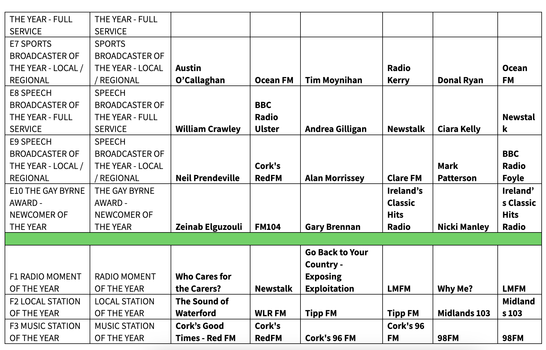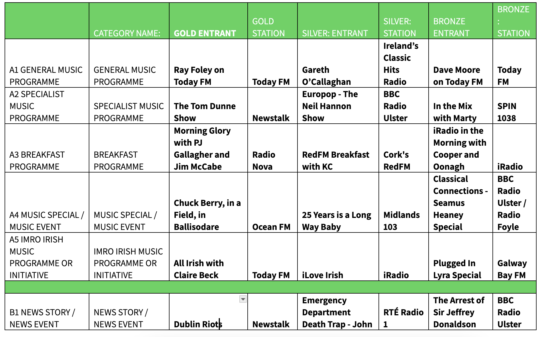 Chris Doyle, CEO Bauer Media Audio Ireland said; “We could not be more pleased to be recognised on such a scale at this year’s awards – an important showcase for a radio industry that is in rude health”